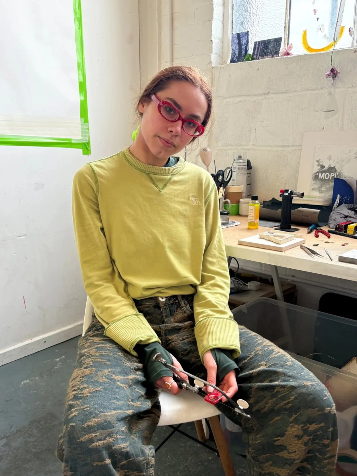 She studied History of Art at the University of Cambridge, where her research-driven approach to making developped alongside a critical engagement with material culture, Surrealism, and New Materialist theory. She has exhibited in multiple independent and London-based group exhibitions including the Affordable Art Fair in Hampstead and Battersea, and continues to work collaboratively with musicians, film directors, fashion designers, and architects across a wide range of independent projects. She is the recipient of the Alan and Karen Grieves Visual Art Award from Trinity Hall and previosuly held a Senior Art Scholarship at St Paul’s Girls’ School.